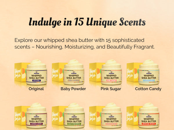 - Beloved Scents: Our Shea Butter offers a selection of 15 scents to suit your preferences. Find your fragrance!