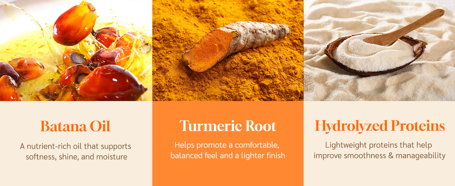 Formulated with batana oil and turmeric extract for a rich, nourishing texture. -