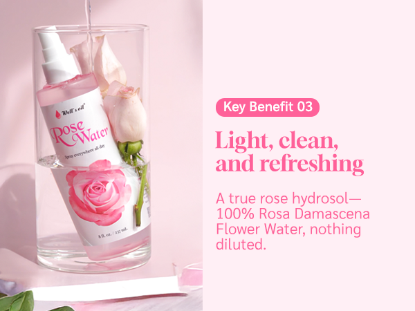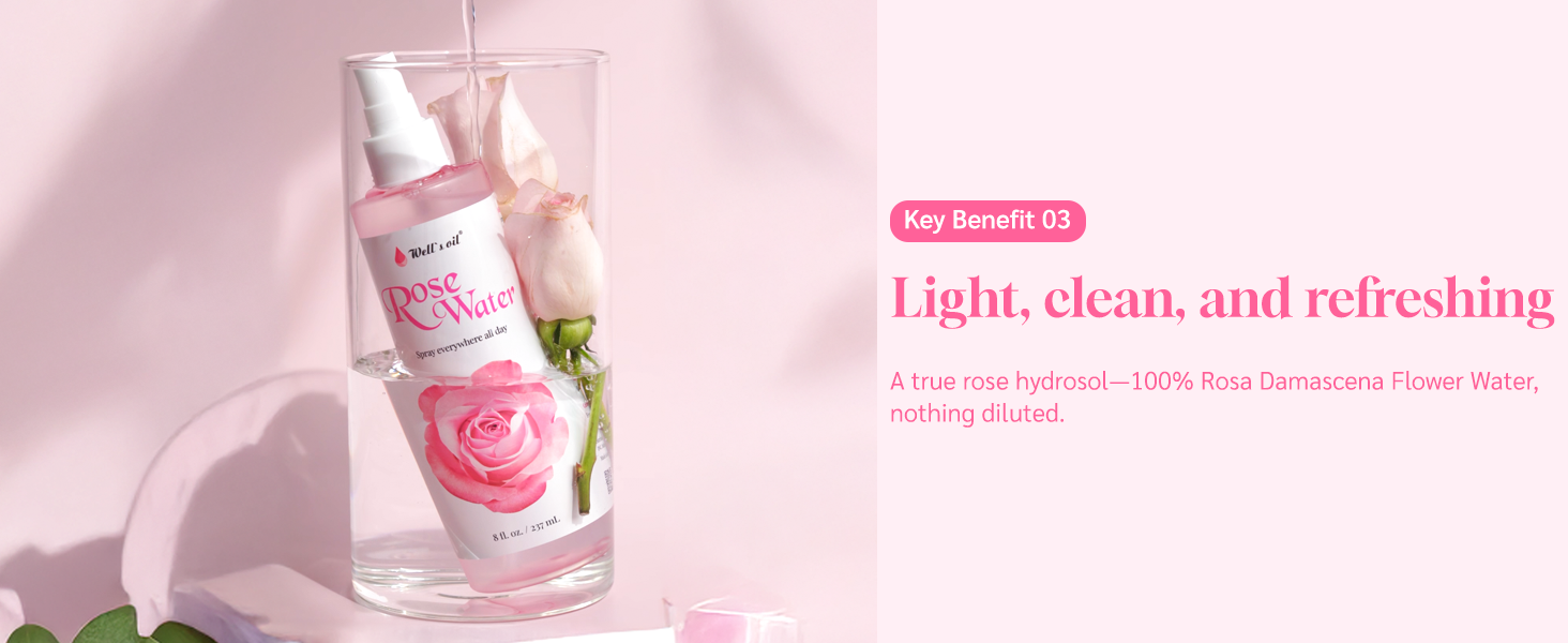Often considered one of the best rose water options for daily routines, this hydrosol offers a light, refreshing mist suitable for use on hair, scalp, and skin. Because it is distilled directly from rose petals, it provides a naturally soft rose scent without heaviness or residue.