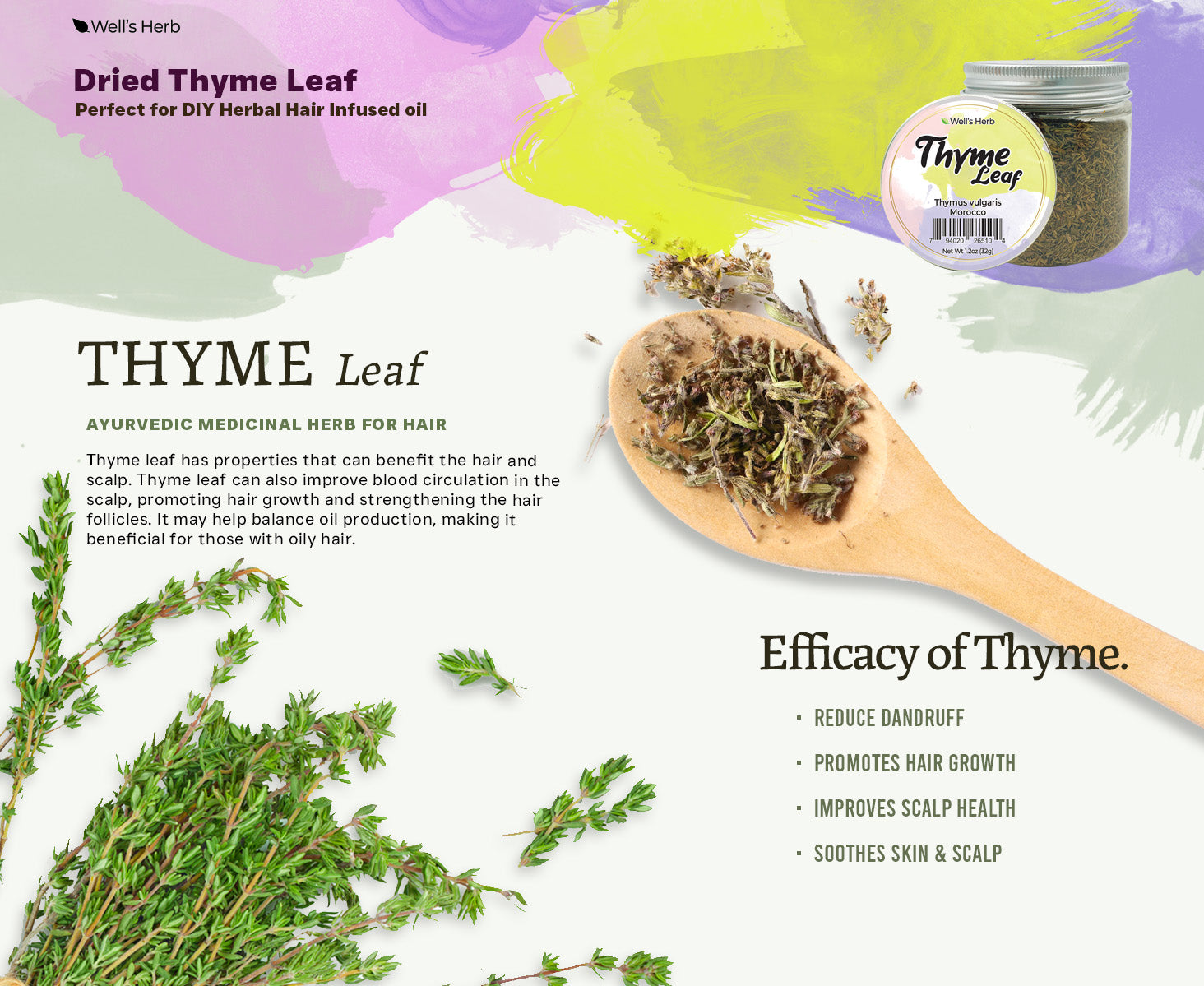 - The rich nutrients in Thyme Leaf can provide deep moisturizing and nourishment for your skin and make your hair look healthier and stronger.