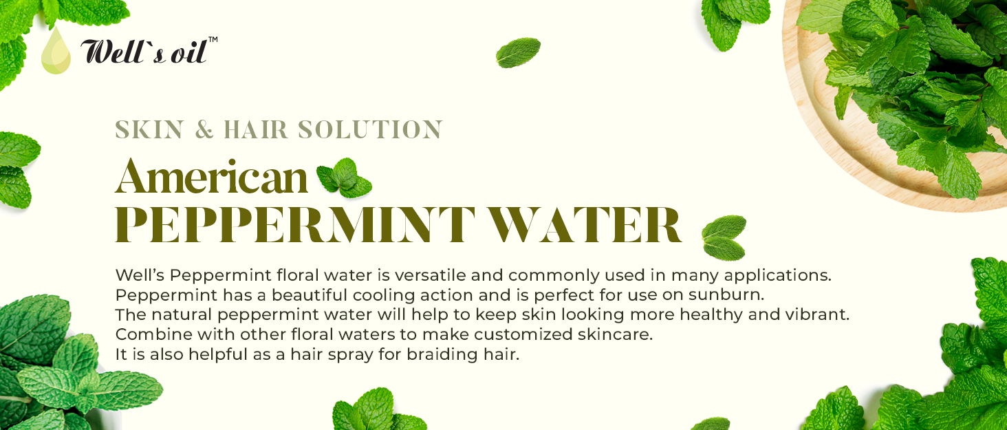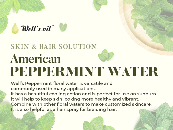 - Hair Care: Well's Peppermint Water is also outstanding for cleansing hair and scalp. It removes impurities and dandruff from the hair, making it soft and easy to manage. It supplies moisture to keep the hair hydrated, making it look fuller and more radiant.