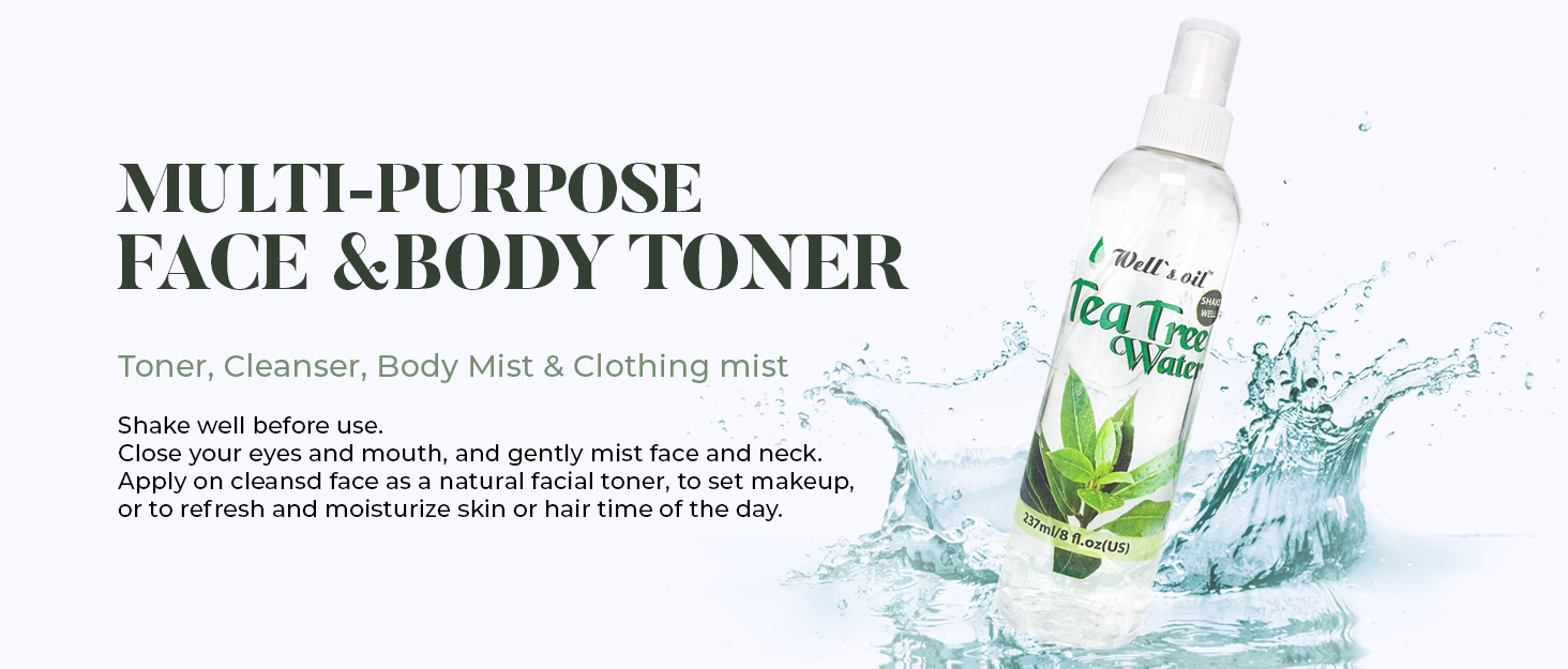 - How to Use: Well's Tea Tree Water can be used whenever hydration is needed. It is ideal as a hair & scalp mist or a skin toner by spraying directly on the skin or mixing with creams and lotions.